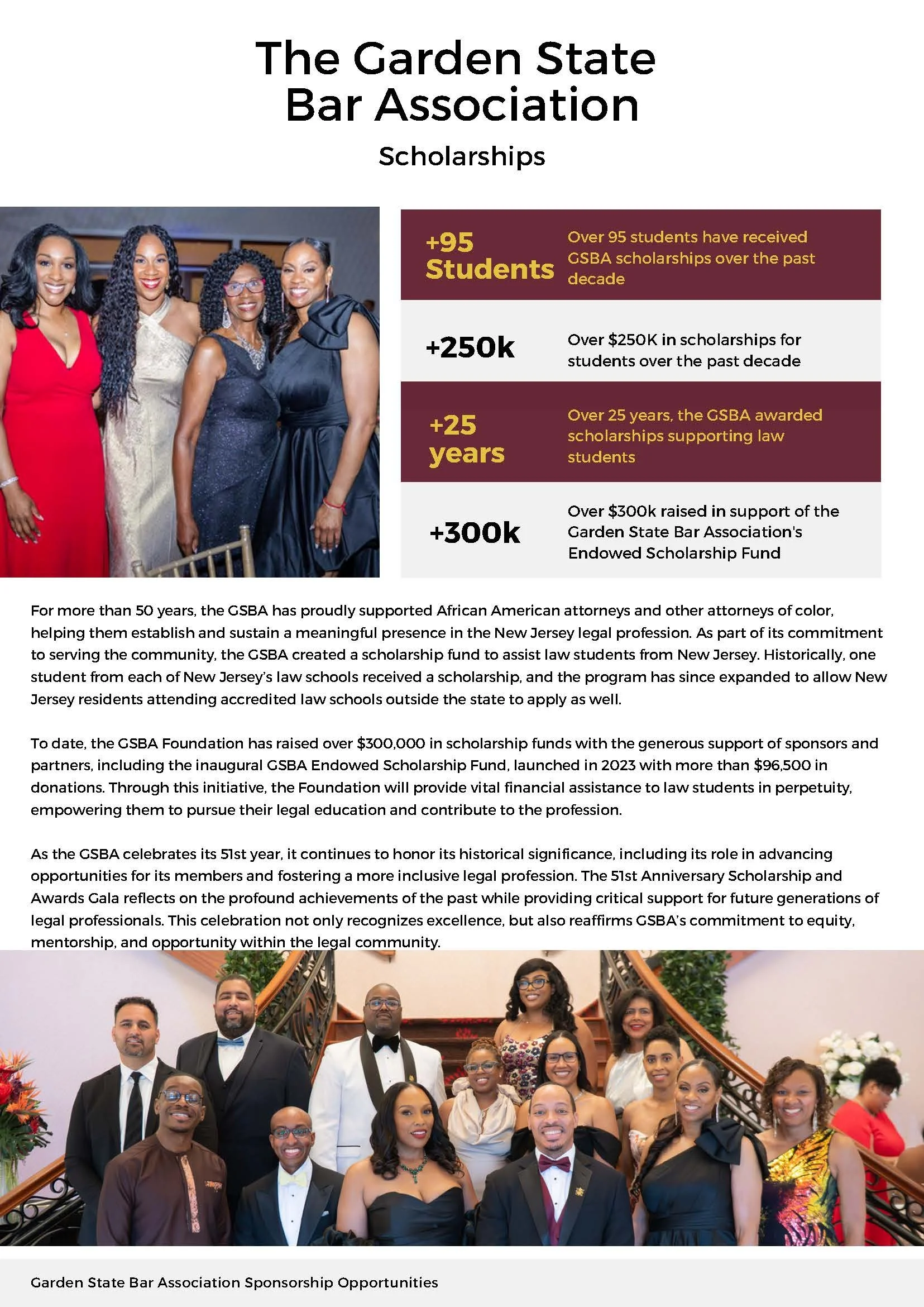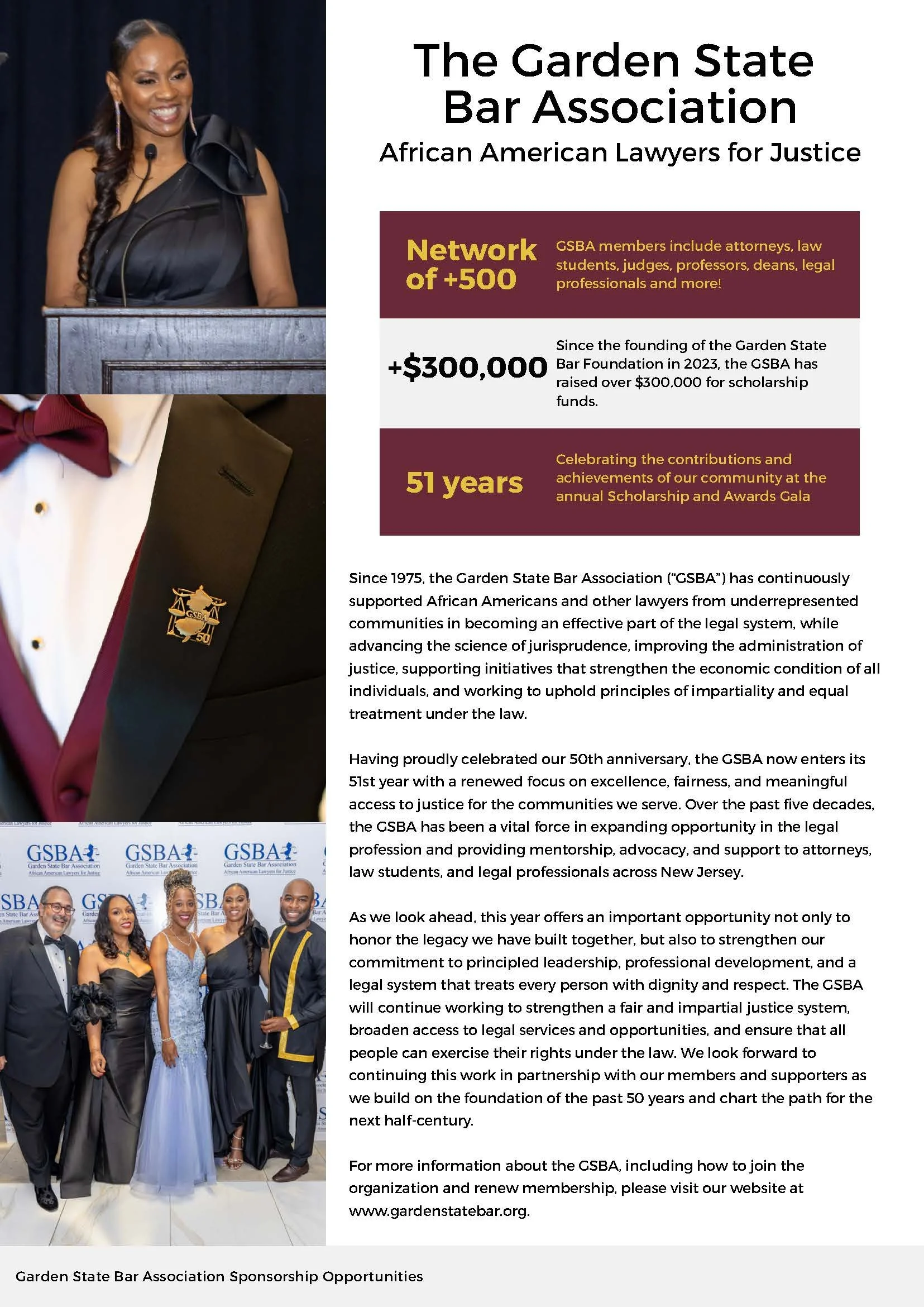 To learn more about sponsoring the gsba’s 50th anniversary scholarship & awards gala please email info@gardenstatebar.org.